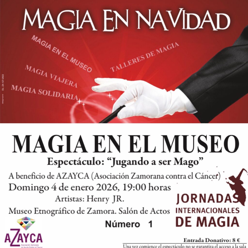 El domingo 4 de enero de 2026 a las 19 horas en el salón de actos del Museo Etnográfico de Zamora tendrá lugar el espectáculo «Jugando a ser Mago» por el artista Henry Jr.
