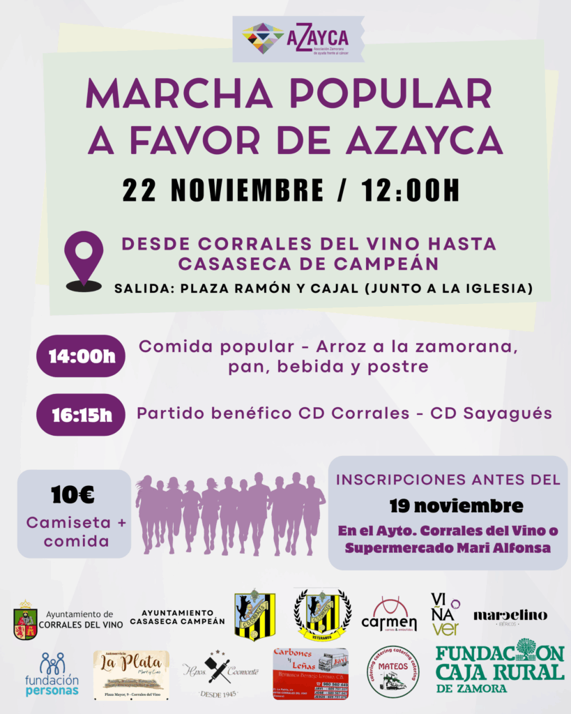 El próximo 22 de noviembre a las 12:00 horas tendremos una marcha popular a favor de AZAYCA desde Corrales del Vino hasta Casaseca de Campeán.